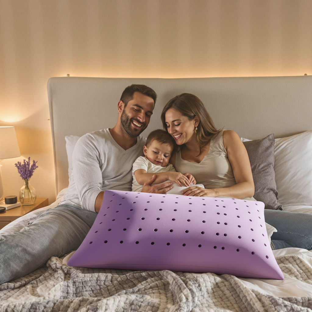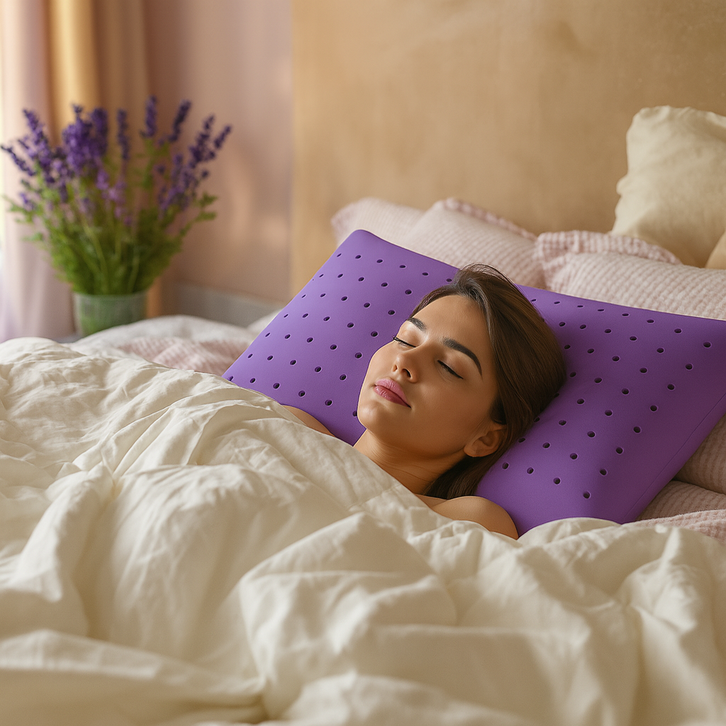 כן. ניחוח הלבנדר ידוע כמרגיע, מפחית מתח ומסייע להירדם מהר יותר. בנוסף, הכרית מעניקה תמיכה נכונה לצוואר ולראש, כך שאפשר ליהנות משינה עמוקה ורציפה.