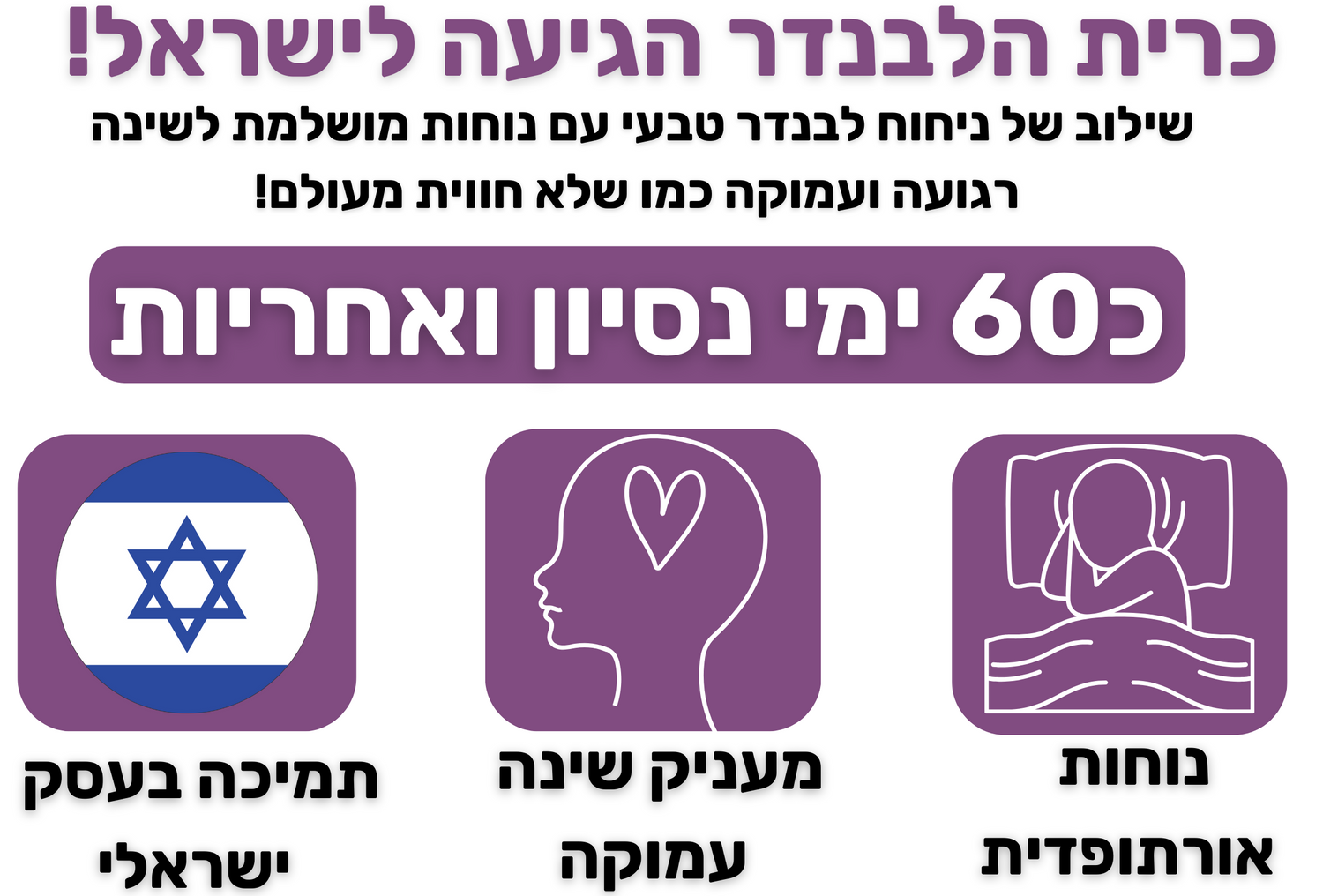 בניגוד לתרופות או תוספי שינה שעלולים לגרום לתופעות לוואי, כרית הלבנדר מציעה פתרון טבעי לחלוטין. היא מתאימה לשימוש יומיומי, בטוחה ואינה ממכרת – כך שניתן ליהנות משינה טובה לאורך זמן בלי חשש.